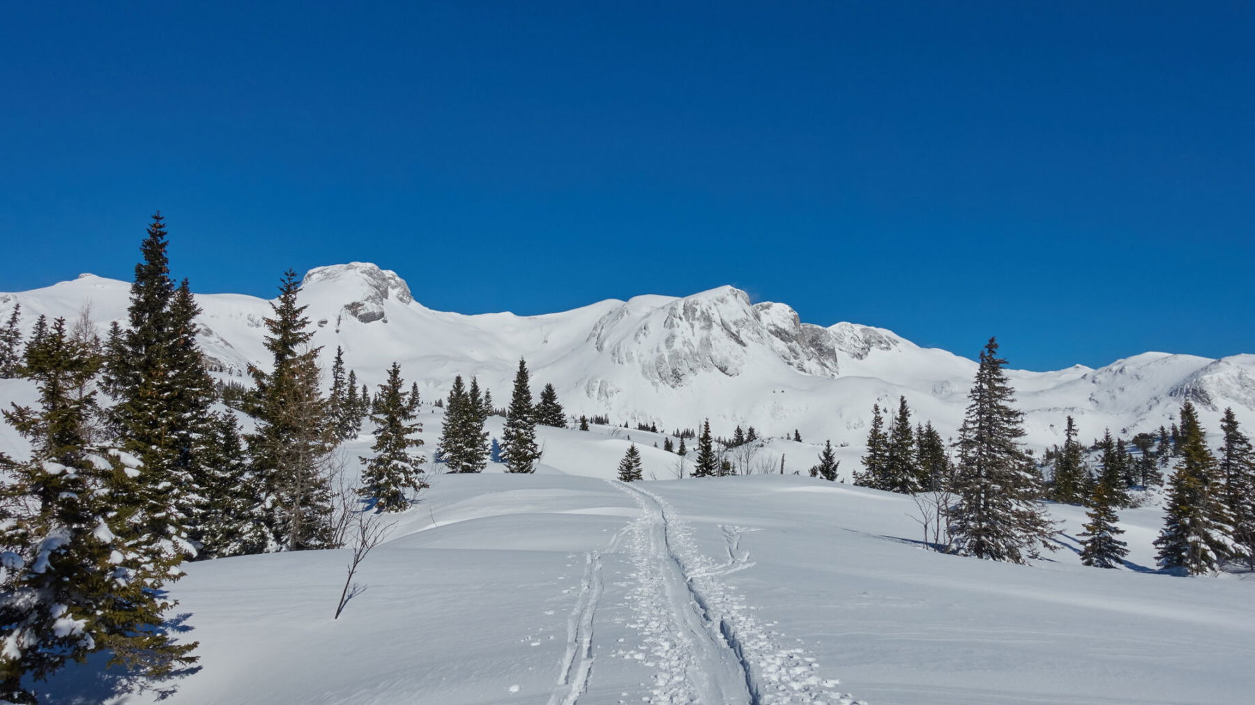 Auf der Sonnschienalm hat man eine sehr schöne Auswahl an Schneeschuhtouren und Schitouren. Am Bild unten ist links der Ebenstein zu sehen, mittig der Polster. Hier gibt es verschiedene Hänge mit unterschiedlichen Schwierigkeitsgraden, sodass für jeden etwas dabei sein sollte.