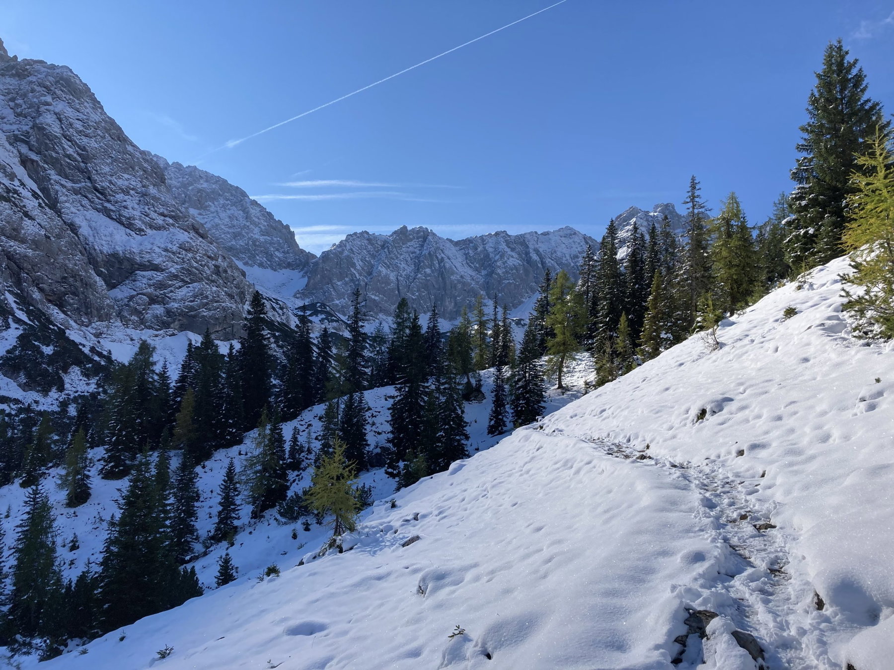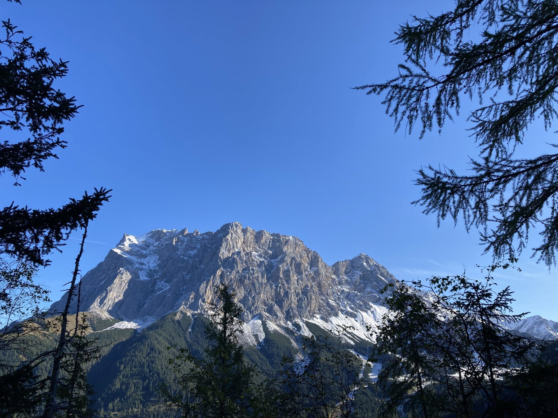 An der Ehrwalder Alm gönnen wir uns nach unserer insgesamt 6-stündigen Tour (mit Pausen) einen Kaiserschmarrn in der warmen Herbstsonne. Anschließend nehmen wir unseren Knien zuliebe die Seilbahn runter zur Talstation. Von dort aus spazieren wir gemütlich die letzten 3,5 Kilometer zum Bahnhof. Der Zug bringt uns ganz bequem ohne Umsteigen in 2 Stunden direkt nach München zurück – ein schöner Ausklang für einen wunderbaren Tag.